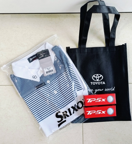 ちゃっかり優勝賞品のレクサス・ポロシャツとボール2スリーブをゲット。