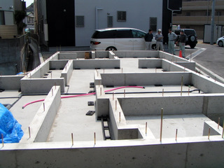 そろそろ基礎のコンクリート打ちも完成し、上物を立てていく準備が進んでいます。