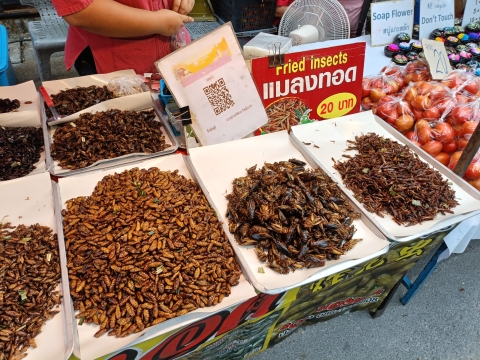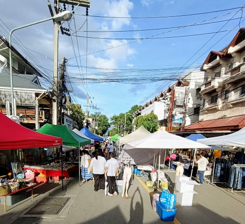 旧市街の東の端のターペー門から西の端までずっと屋台がならび、食べ物・衣料品・お土産物からコンナ物まで売ってます。