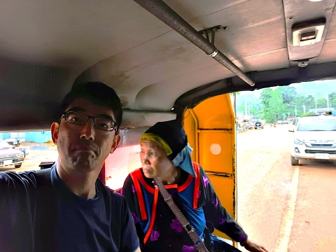 一通り朝市も見終わったので乗り合いソンテウに乗ってパーイの街に戻りますが、なんとお隣はリス族のおばぁちゃんで雰囲気満点。