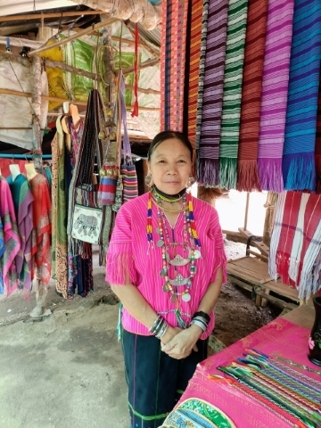 ちなみに首長族の皆さんは昨日朝市で逢った日常生活で民族衣装を着ているリス族の方々とかとは異なり、諸々の事情でミャンマーからタイに移り住んで観光客向けのお仕事で生計を立てているので、入村には500バーツ(約2,200円)かかるしお土産を売って収入を得る生活をされてます。