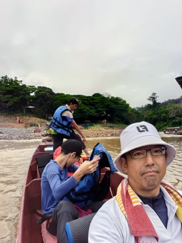2日目は9時半に河畔のボート乗り場近くでガイドさんと合流、本日のルートはとーちゃん期待通りトレッキングはキャンセル→ボートで移動に決定。