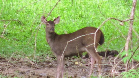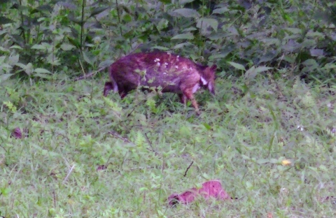 去年は翌朝に猪一匹出ただけの小屋ですが、今年は何と小屋に入って間もなく鹿(サンバーディア)が登場!しかも夕暮れ前には別の鹿(マウス・ディア)も出て来て、鹿祭り状態!!
