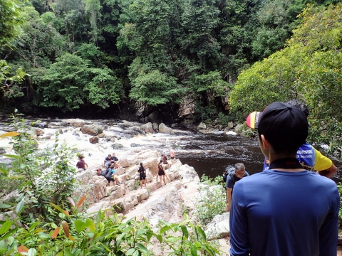 お昼は15分程のトレッキングで滝まで移動し、そこで持参したチキンカレーでランチ。