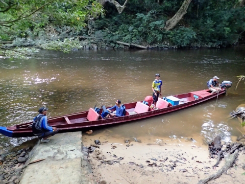 三日目も朝から数時間動物の出現を待ちますが、残念ながら空振りと言う事でボートに乗って拠点に戻ります。