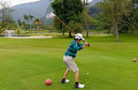 ただ指をくわえて会費だけを払ってる訳にもいかず、今日は暇そうにしている次男坊を連れ出し2週連続でお馴染み朝会ゴルフに参加です。