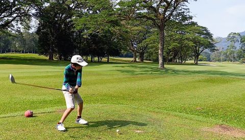 立ち上がりNo.4Hまではダフリ+パターがショートし思うようなスコアが出ず泣きベソをかきながら回っていた次男坊、ただその後は立ち直りNo.10Hのミドルでパーを取るなど調子を上げて、後半はハーフベストからの全体でも自己ベストを2打更新してフィニッシュ。
