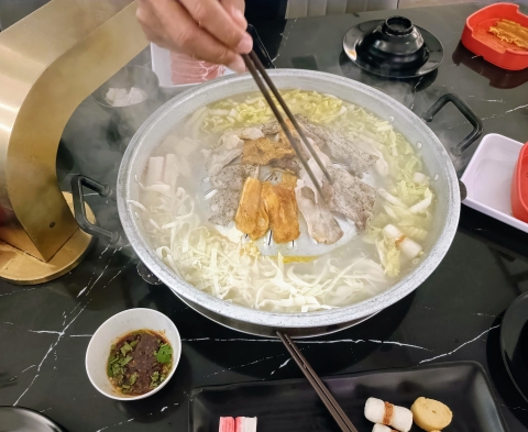 冷蔵庫に入ってるお肉や練り物・野菜+インスタント麺やらをセルフで調理する食べ放題形式のレストランで、味がどうこうより”あのGACKT様がこんな庶民的レストランに来るのね!?”という驚きの発見。