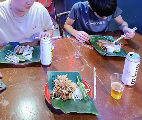 とりあえず午後の便でのタイ入りで宿に着いたら夜だったので、夕食は友人の息子が希望していたパッタイ(米粉の麺を使ったタイ風の焼きそば)を食べに、ネットで調べた有名店「パッタイ・ファイタル」へ突撃!!