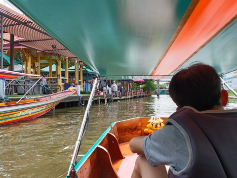 が、目的地の水上マーケットは小規模かつ運河の畔の同じスタイルの市場だったので、ボートに乗って運河をめぐるコト自体が目的みたいなもんでんな。