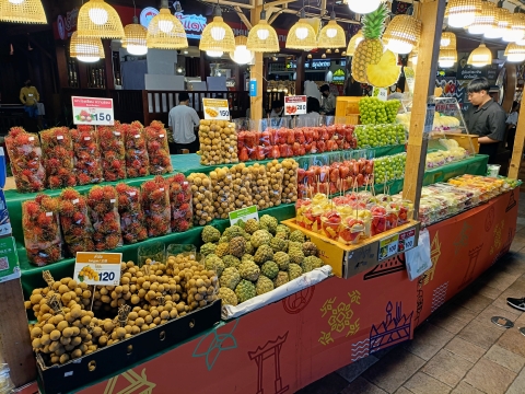 マンゴーシェイクを飲んだり、お土産物を物色したり、せっかくなので南国フルーツの「サワーソップ」を友人の息子に食べさせてみたりと、最先端の中にも東南アジアならではの雰囲気があり1日で新旧のバンコクを両方満喫。