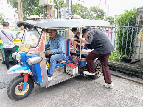その後はバンコクに来たら外せない、とーちゃん垂涎の「ソンブーンのプーパッポンカレー」を食べるべく、渡し船でチャオプラヤ川を渡り、友人の息子に値段交渉を経験させトゥクトゥクでお店へ。