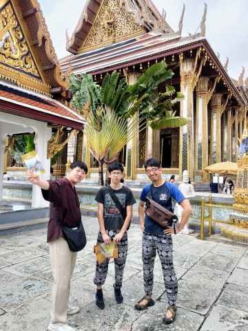 一昨年末にワット・プラケオへ来た際、短パンだったので(タイの有名寺院では膝が見えるのはNG)物売りから割高で買ってしまった「タイ・パンツ」を親子で穿き、しっかり減価償却を進めながらもエメラルドの仏像やらを満喫。