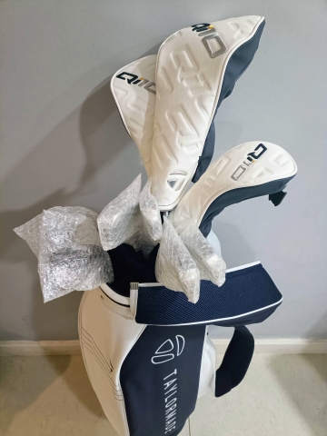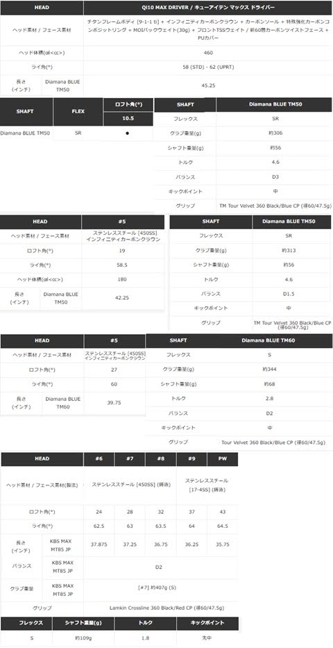 試打の結果、とーちゃんのヘッドスピードだとドライバーのシャフトは今まで通りSで問題ないらしいですが、タイミング的にSRの方が引っ掛けが少ない+Qi10Maxだと捕まりが良いのでスライスも出にくいので方向性が安定するとのアドバイスあり、ドライバーとFWは初のSRシャフトにしてみまして。