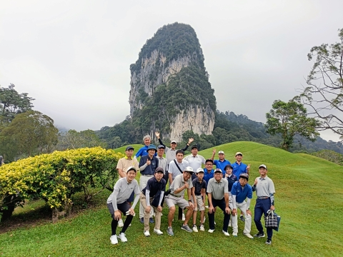 朝会の毎度の面々20名5組に分かれてティーオフですが、主催+主賓を兼ねるとーちゃんのスコアは如何に?