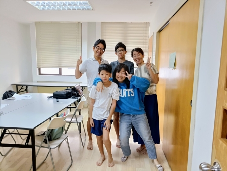 途中からは高校受験の面接でアピールポイントにならんか?との下心を持つ長男坊+とーちゃんの二人体制でマレー語会話の集中レッスンに切り替えておりましたが、最終日なので先生への簡単なプレゼントを持ってママと次男坊も顔を出し、記念に先生とパチリ。