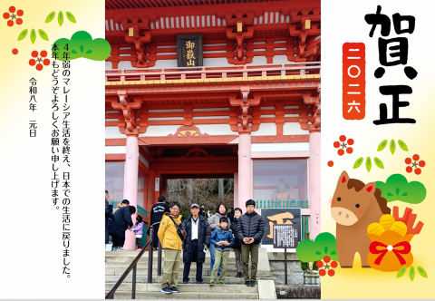 4年振り日本で謹賀新年 01:日々の出来事 2026.01.01 マレーシアへの赴任を機に、2023年版から年始のご挨拶はハガキからOnLineに完全移行させて頂きましたが、やはり日本に帰ってくるとこのスタイルで一つは作っておきたくなりまして。 国を問わず、今年も宜しくお願いいたします。